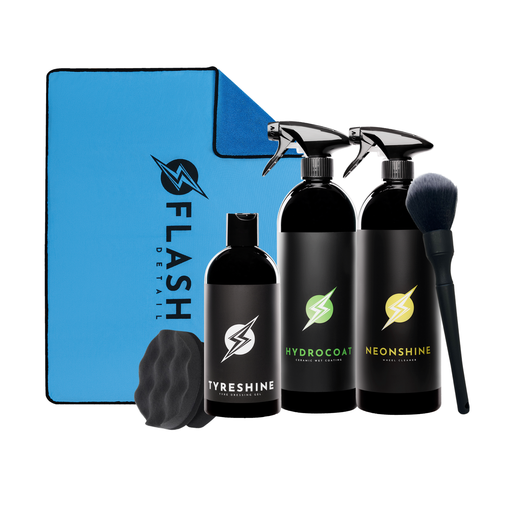 Hai a disposizione l'essenziale per proteggere la carrozzeria con Hydrocoat, pulire i cerchi da sporco ostinato con Neonshine e proteggere i pneumatici con Tyreshine.